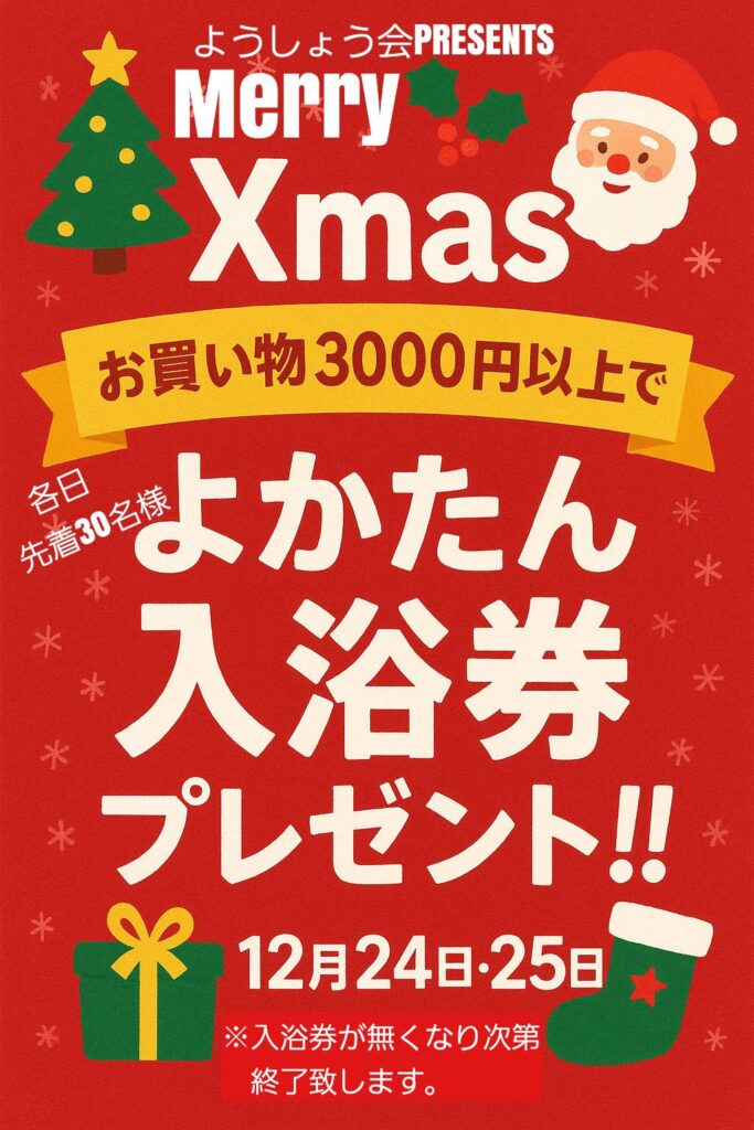 3,000円以上お買い上げの方に、よかたん入浴券を