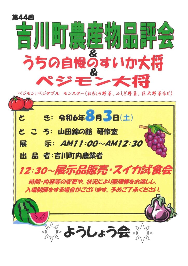 品評会開催のおしらせ