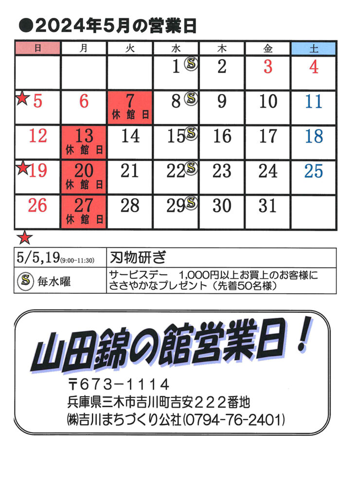 5月営業カレンダー