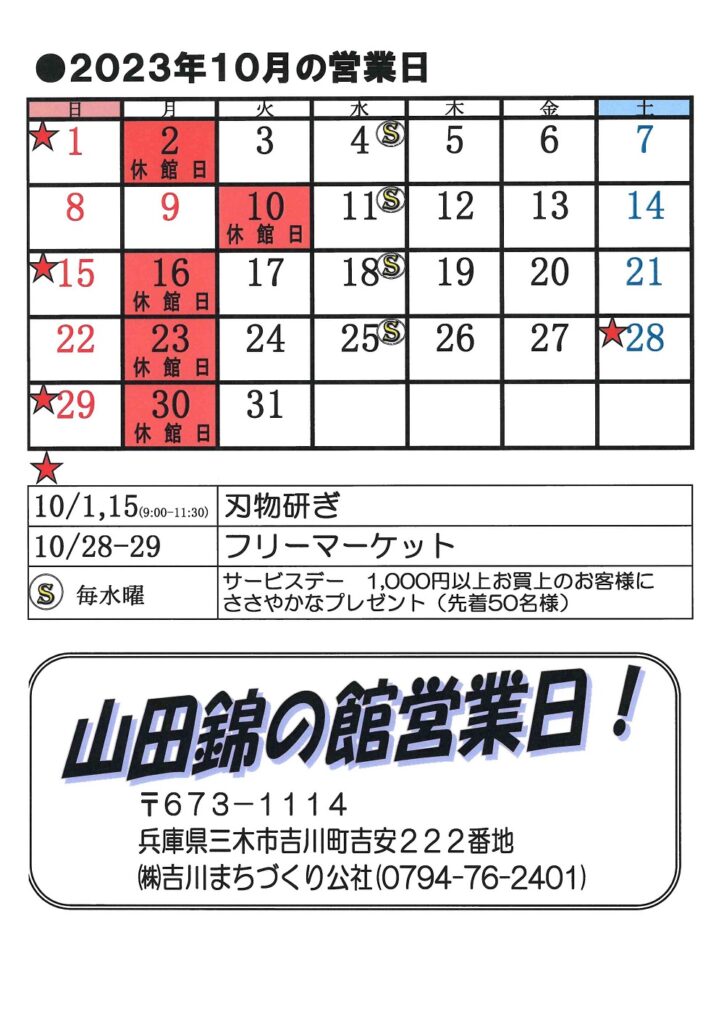 10月営業カレンダー