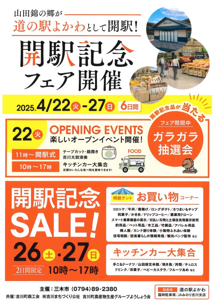 4月22日(火)、山田錦の郷が道の駅よかわとして開駅致します。
