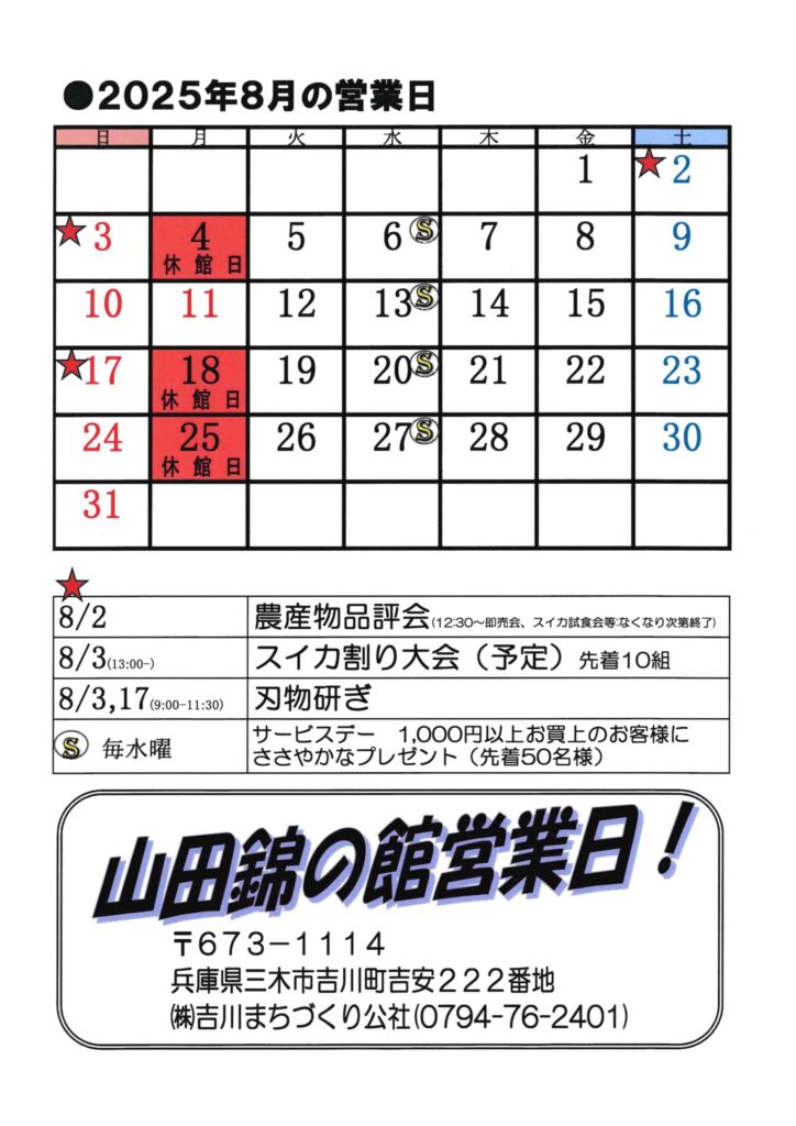 吉川温泉よかたん 令和7年12月営業カレンダー