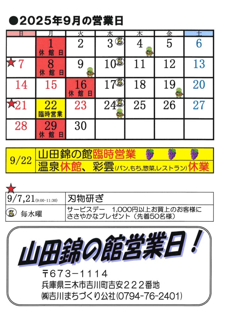 吉川温泉よかたん 令和7年12月営業カレンダー