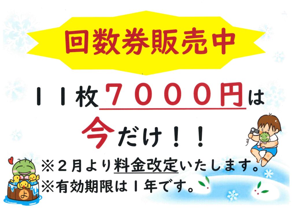 回数券販売(販売期間:~1月31日まで)※2月より11枚綴り8,000円