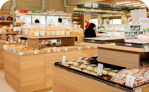 館内で製造されたパンや、もち、惣菜、味噌などの特産物を販売しています。