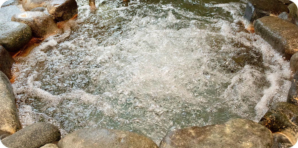 吉川温泉よかたんの源泉風呂は、地下1500mから湧き出た「炭酸泉」です。また、塩分も多く含まれているのでさらに入浴効果を高めてくれます。露天源泉風呂から足湯まで様々な温泉施設をご用意してお待ちしています。